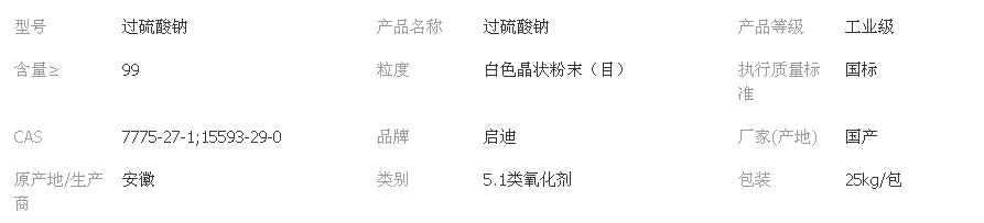 | 包裝 | 20公斤/紙板桶,25公斤/紙板桶 |